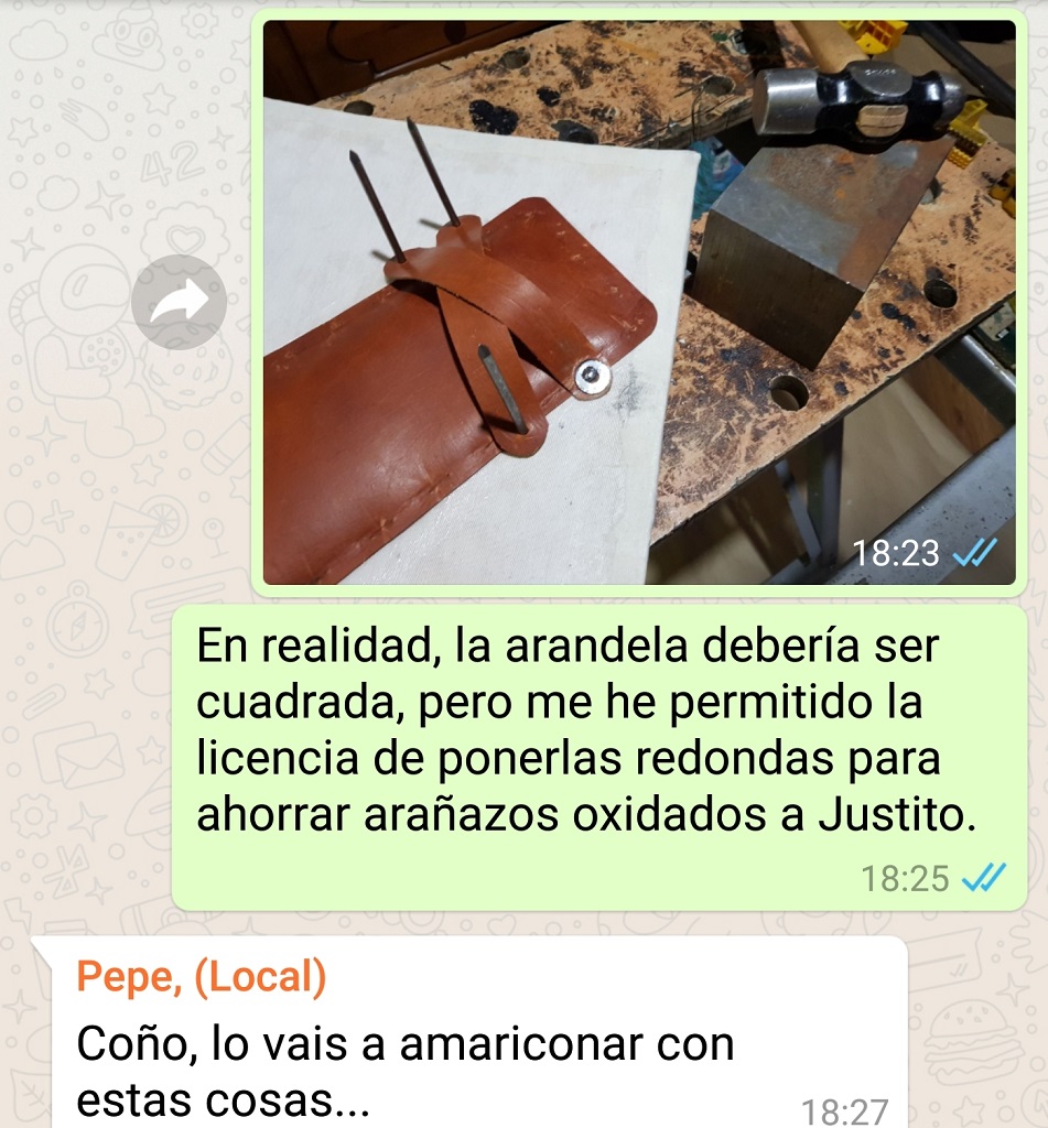 El hijo de esta pareja, no entiendo muy bien por qué, está desarrollando una precoz afición por las espadas y demás parafernalia medieval / de fantasía / de ciencia ficción / de superhéroes / de piratas... Así que yo no cabía en mí de sorpresa cuando Justo me mandó un mensaje que venía a decir: